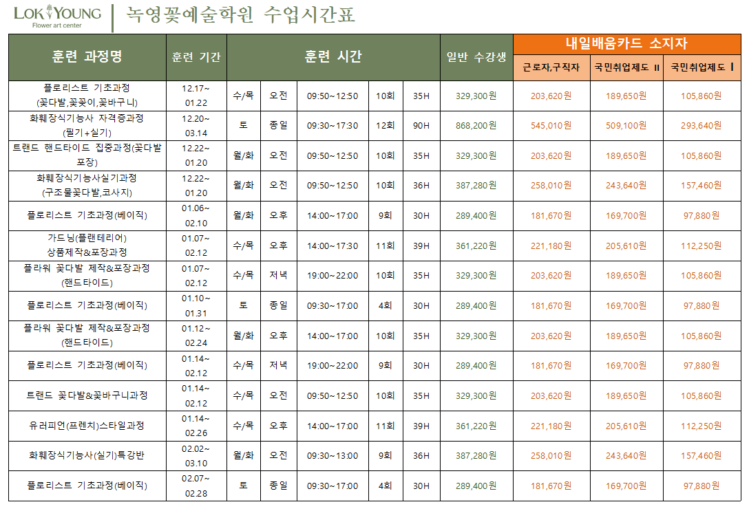 부천인천 플로리스트학원 녹영꽃예술학원에서